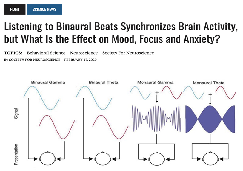 Society for Neuroscience. (2020, February 17). Listening to Binaural Beats Synchronizes Brain Activity, but What Is the Effect on Mood, Focus and Anxiety? Retrieved from https://scitechdaily.com/listening-to-binaural-beats-synchronizes-brain-activity-but-what-is-the-effect-on-mood-focus-and-anxiety/#:~:text=Neurons%20throughout%20the%20brain%20begin,increases%20focus%2C%20and%20improves%20mood.